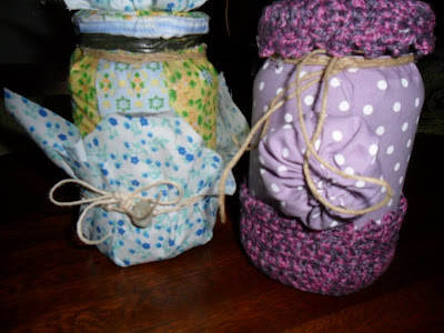 POTINHOS DE VIDRO QUE RECICLEI, VOU DAR DE PRESENTE A UMAQUERIDA AMIGA DA IGREJA ONDE FREQUENTO!