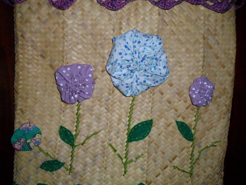 PASSEI CROCHÊ E FIZ ESTAS FLORES E ENFEITEI COM FELTRO.