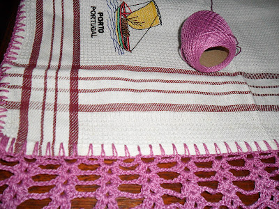UM CONE DE BARBANTE GROSSO PORQUE QUERO FAZER TAPETINHOS REDONDOS E TAMBÉM COMECEI A PASSAR BICO EM UNS PANINHOS QUE GANHEI DA TIA PORTUGUESA .
